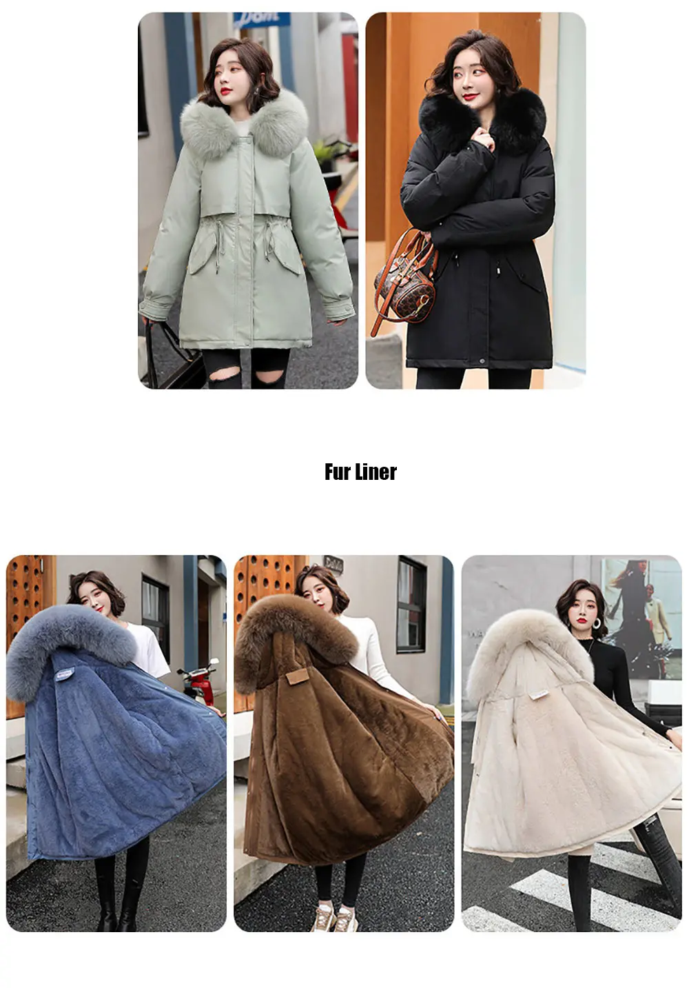 2022 New Cotton Thicken Warm Autumn Winter Jacket Coat Women Casual Long Parka Winter Clothes Fur Lining Hooded Coats