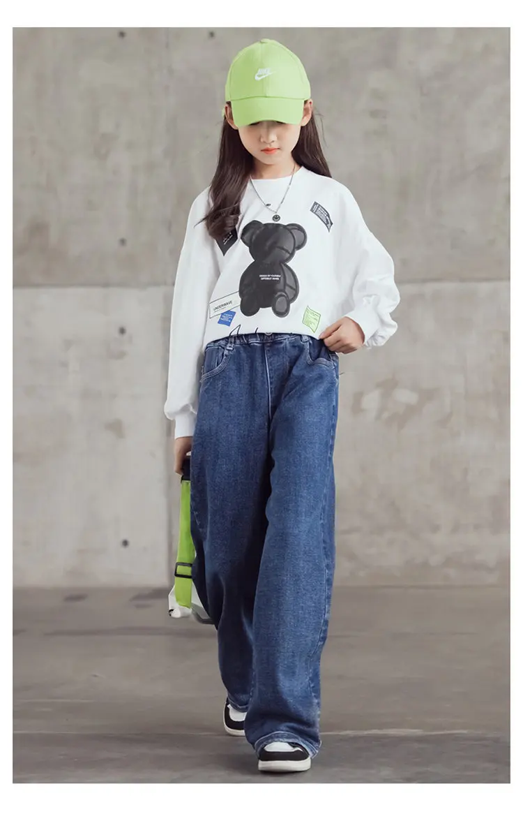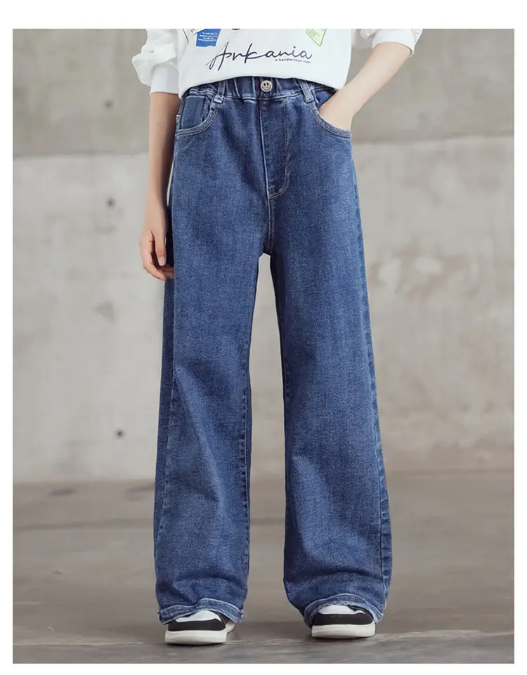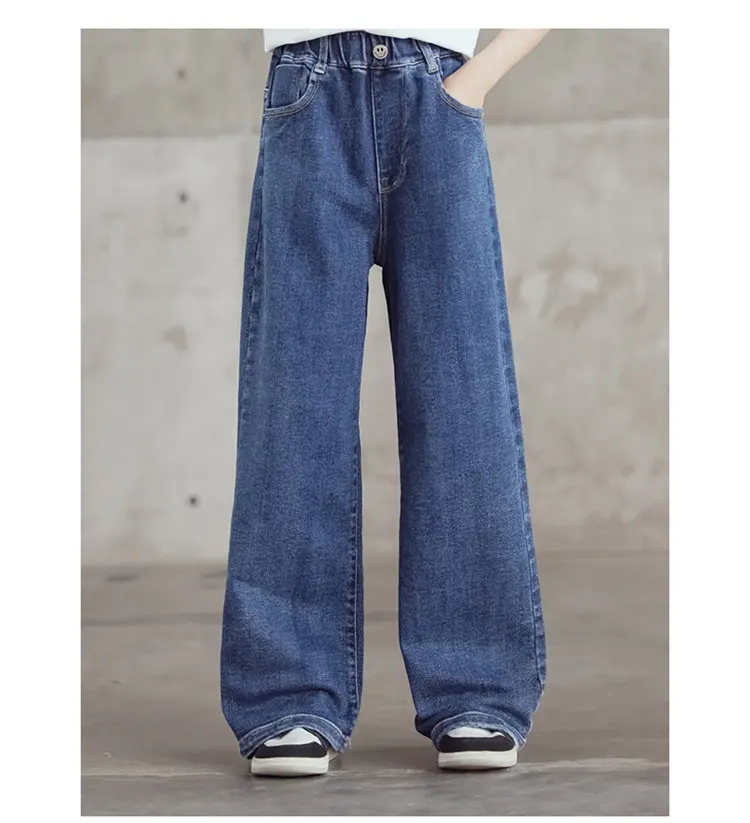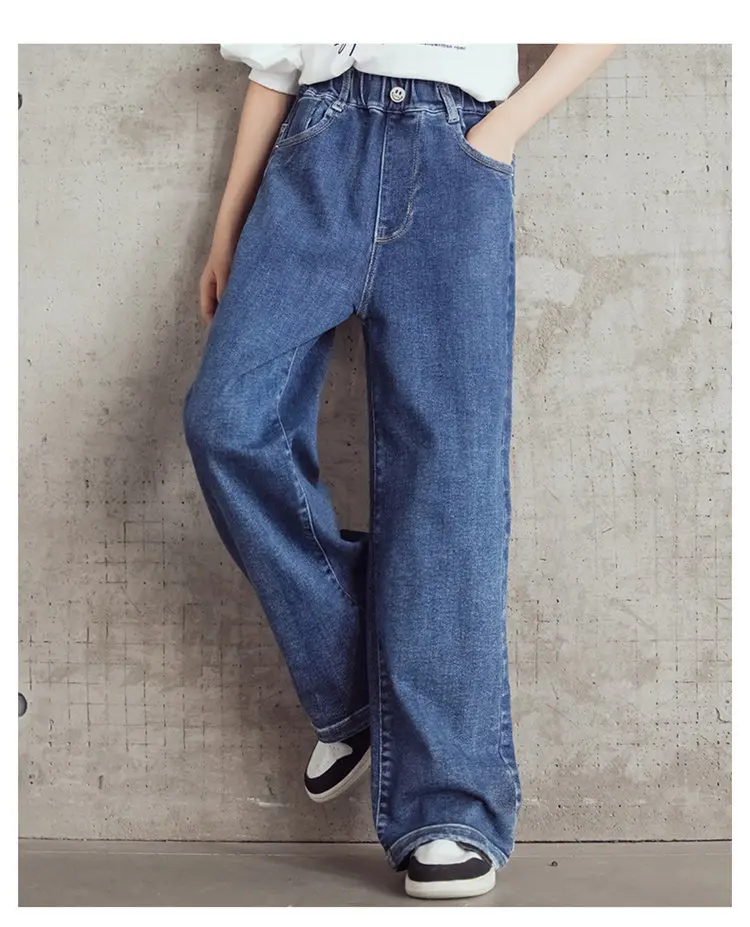 Loose Autumn Teanage Girls Jeans High Waisted Wide Leg Pants Children'S New Korean Kids Blue Denim Pants Trousers High Quality